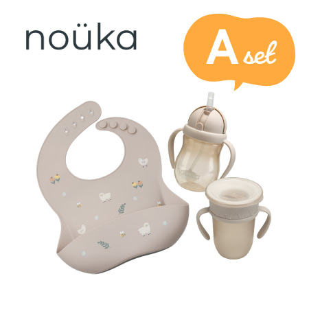 R-1.ノーカ マグ2種とビブの3点セット A: Soft Sand(3名様)