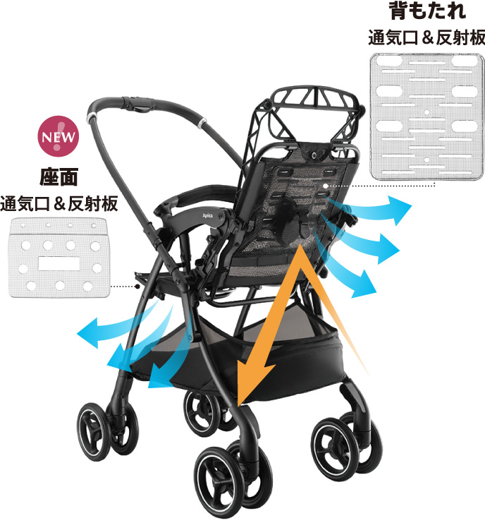 赤ちゃんが快適に過ごせるための機能が詰まったシート構造。