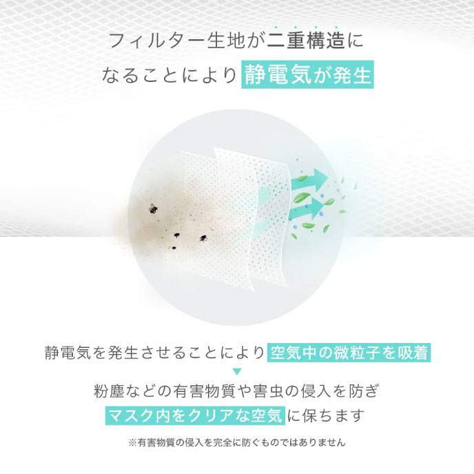 静電気の力で花粉やホコリから赤ちゃんをガード。マスクがつけられない赤ちゃんを抱っこしながら守る話題のベビーマスクです。